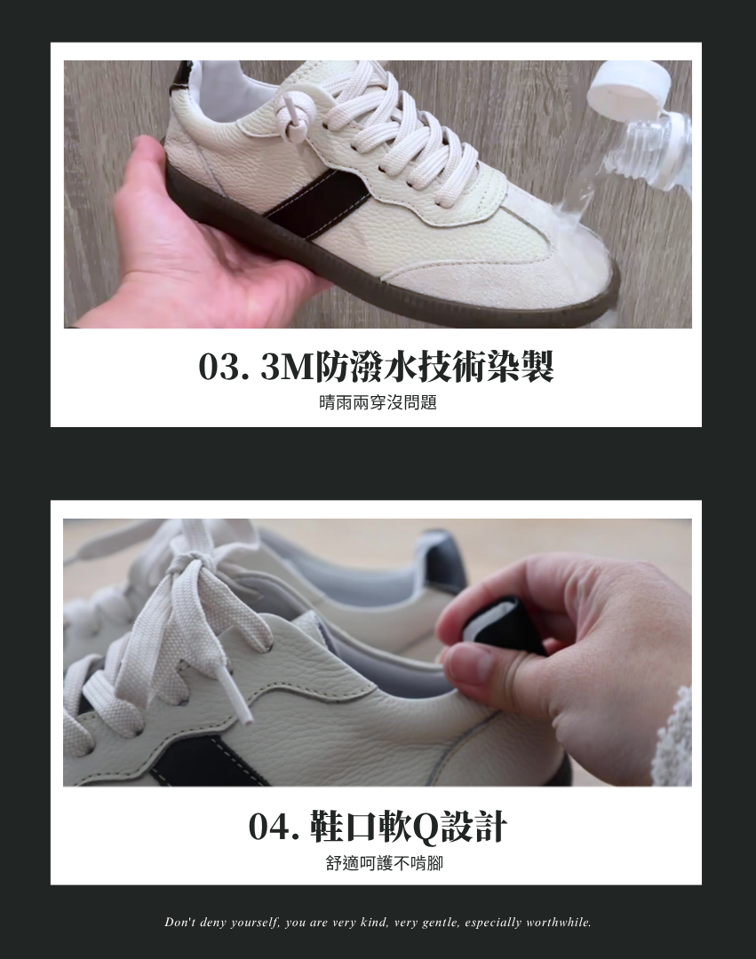 尋找一雙兼具頂級質感與全天候機能的德訓鞋嗎?「格里安系列」嚴選質地細緻的 TOGO 柔軟牛皮,推出溫潤知性的經典白(優雅奶白色)與俐落率性的經典黑。搭載先進的 3M 防潑水技術,讓真皮鞋面不僅抗污、防潑水,更能輕鬆應對突發陣雨。特別針對亞洲腳型優化「軟 Q 鞋口」與寬楦設計,內建「高彈力水乳膠鞋墊」,提供卓越的支撐回彈力與吸震效果。這款由台灣在地職人手工製作的德訓鞋,完美解決出國久走、腳底痠痛與新鞋磨腳的痛點,為您的日常穿搭注入 MIT 的精緻溫度。